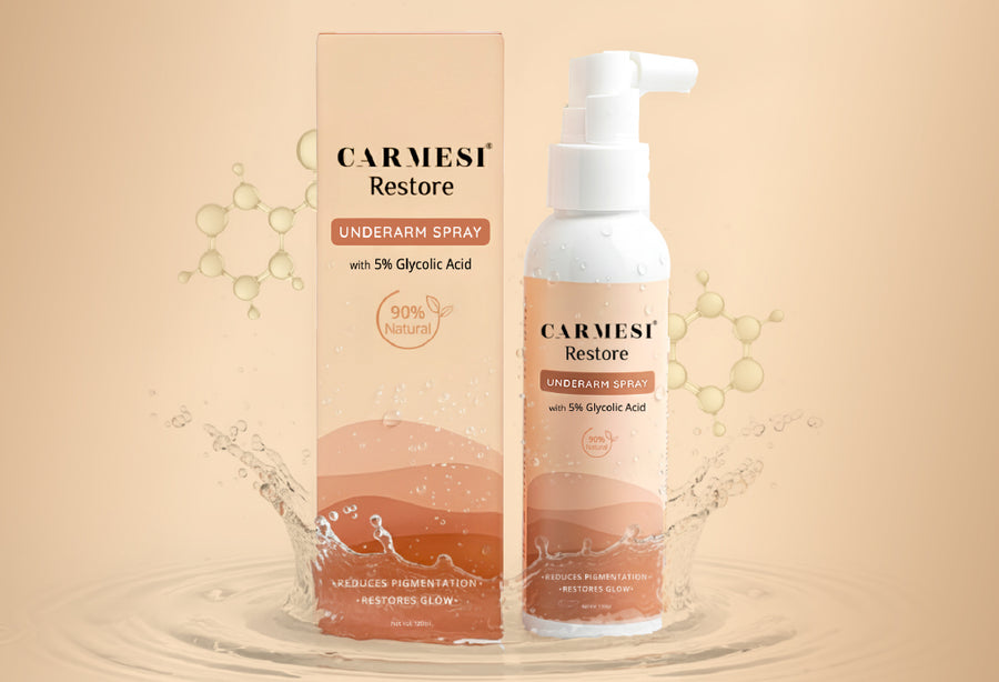For targeting existing pigmentation while caring for the area, Carmesi Restore Underarm Spray combines glycolic acid with ginseng root extract, aloe vera, and witch hazel. This 90% natural formula helps support skin renewal without harsh chemicals.