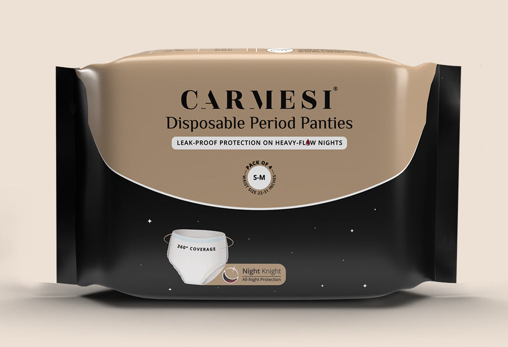 Taking into consideration this comfort quotient, Carmesi devised their new Disposable Overnight Period Panties to make you sleep worriless on your heaviest period days. It gives you 360° protection so that you can move around in your sleep, absorbs flow super quickly and hugs your body comfortably.