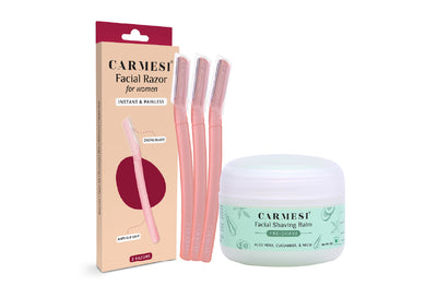Carmesi Women's Facial Hair Removal Combo: 1 Facial Razor, 1 Eyebrow Razor & 1 Facial Shaving Balm