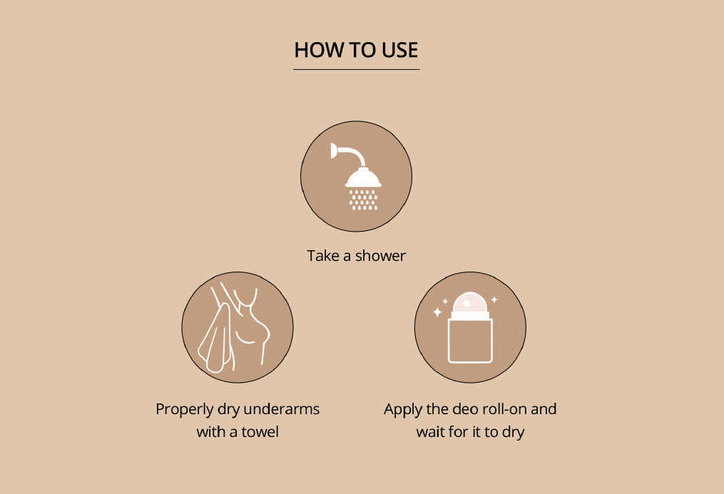 Roll on Your Underarms: Directly roll the deo on your underarms and allow it to dry for a bit before going on with your usual day.